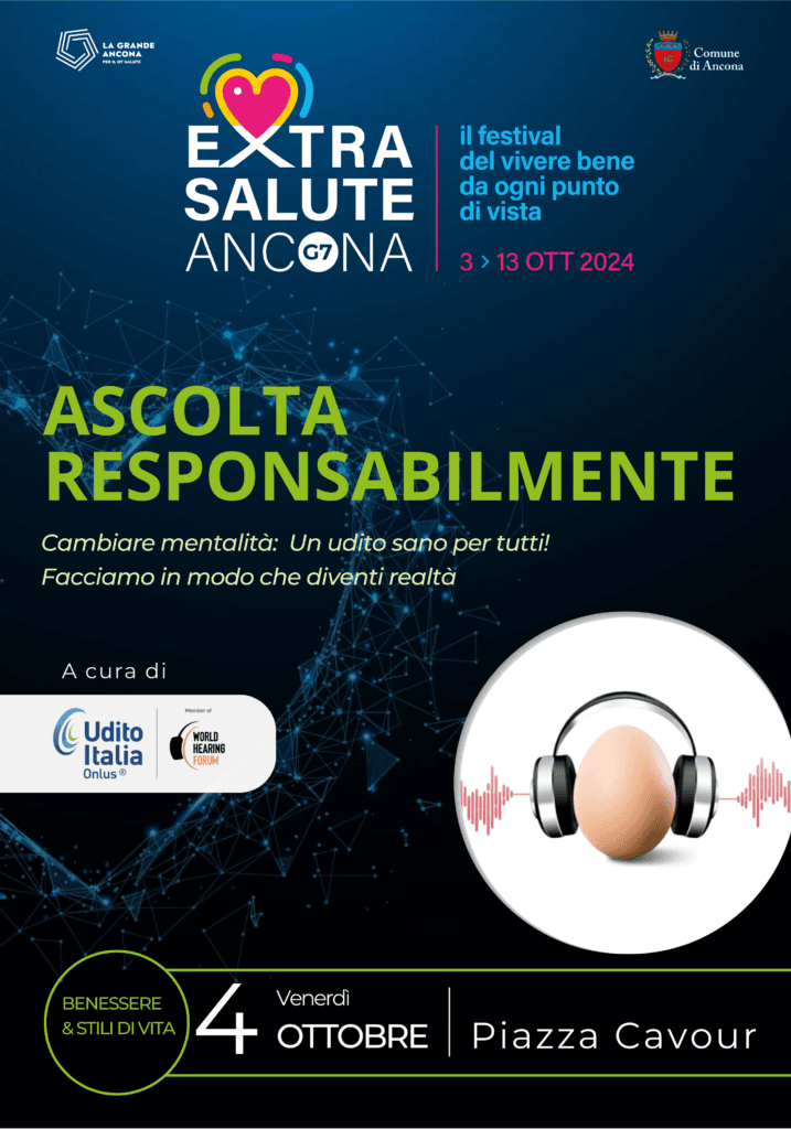Venerdì 4 ottobre Udito Italia porterà la prevenzione del disturbo uditivo nell’ambito dell’Extra Salute G7 che si terrà ad Anona dal 3 al 13 ottobre.